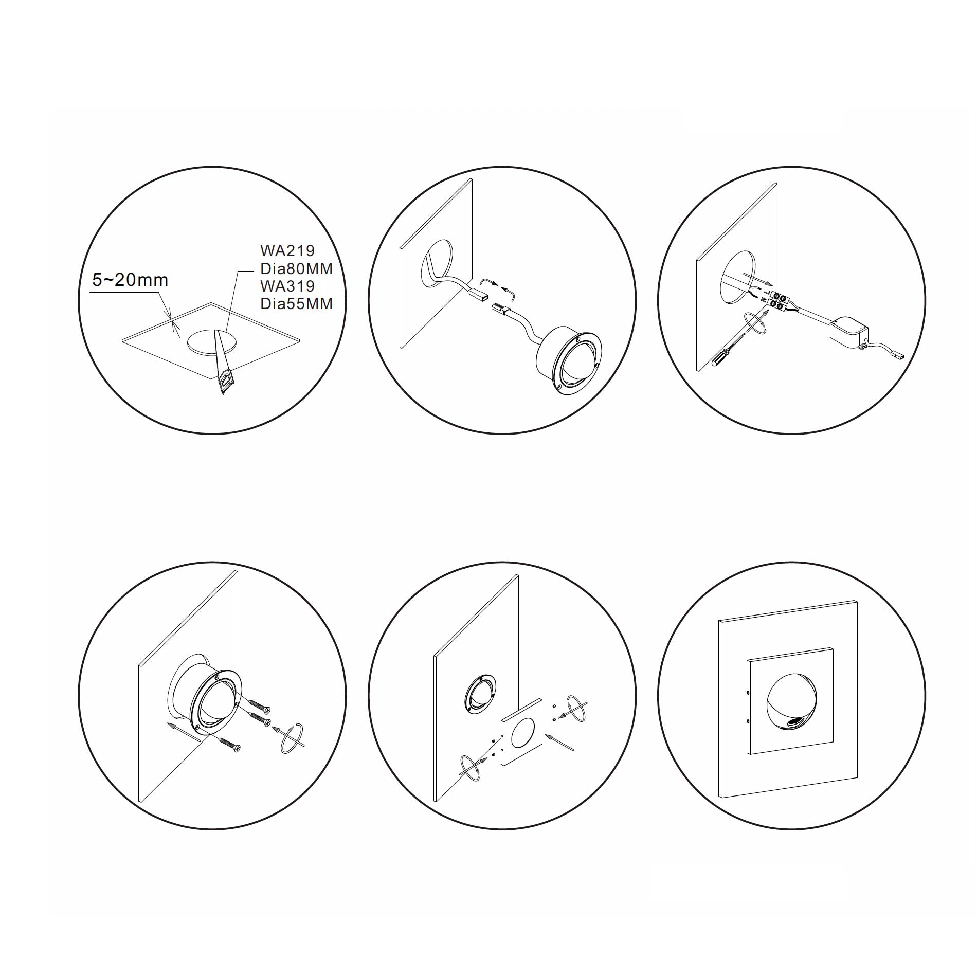 Лумinaire је направљен од висококвалитетног алуминијума са заштитним слојем против корозије и оксидације, што обезбеђује високу издржљивост и дуг век трајања чак и при свакодневној употреби. Уградна инсталација захтева отвор пречника 78 мм и минималну дубину уградње од 50 мм, што чини светло погодно, на пример, за уградњу у узглавље кревета или панеле намештаја.
