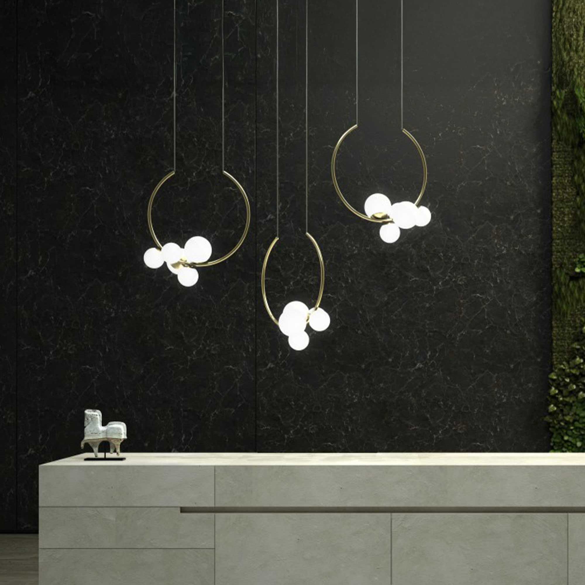 Stínítko svítidla OHM je vyrobeno z trojvrstvého matného opálového skla, ručně foukaného, což zajišťuje unikátní vzhled každého kusu a jemné, rovnoměrné rozptýlení světla.