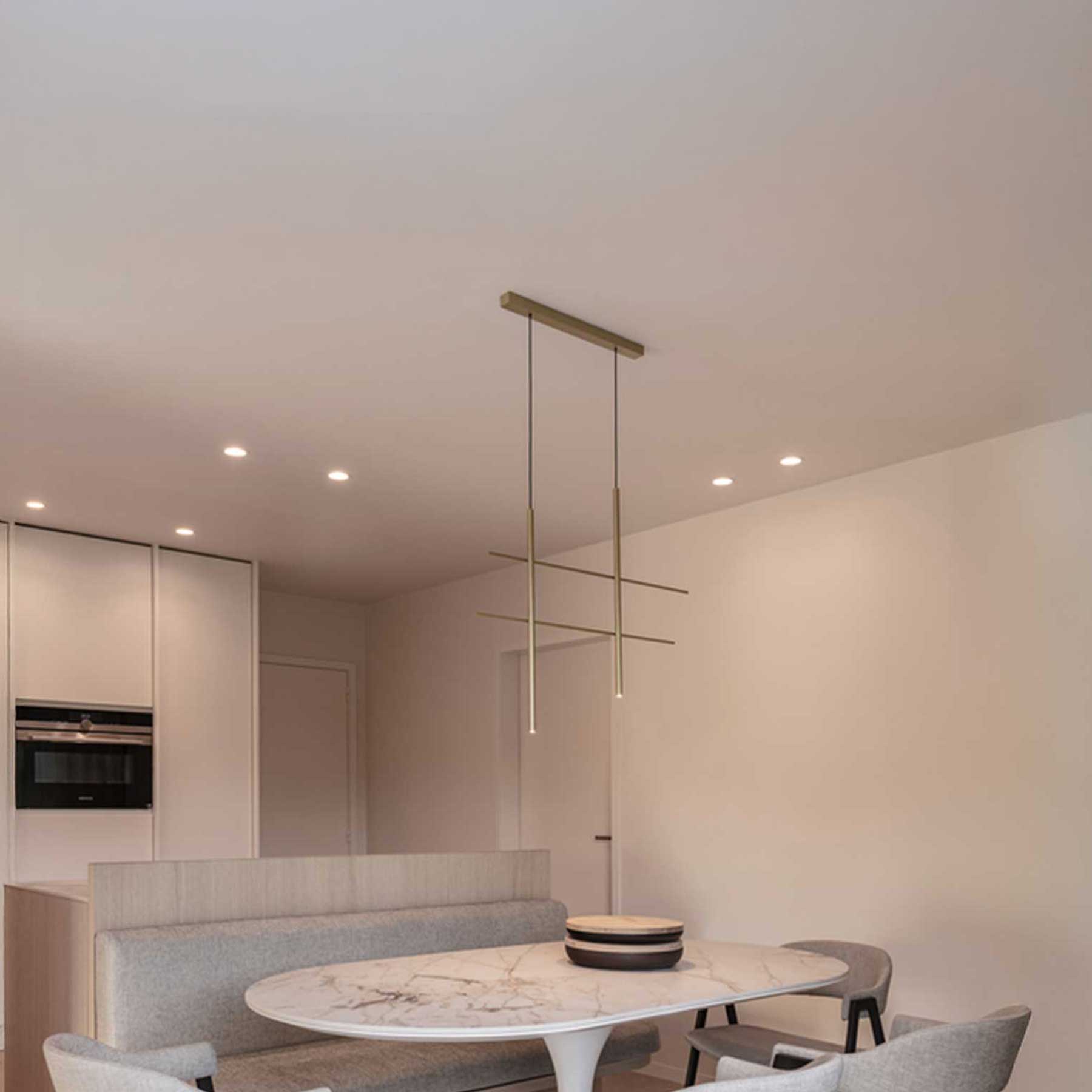 Svítidlo NET od belgické společnosti Wever & Ducré je elegantní závěsné svítidlo s 2 nebo 4 reflektory z hliníku s mokrou lakovanou povrchovou úpravou v pololesklém provedení a černým kabelem. Nabízí vysoce kvalitní LED osvětlení s CRI ≥ 90, teplotou světla 2700 K a konzistentním barevným podáním díky kalibraci ≤ 3 SDCM (MacAdam). Svítidlo je stmívatelné (phase-cut dimming), pracuje s napětím 220–240 V, má třídu ochrany I a krytí IP20, takže je určeno pouze do interiérů. Zdroj světla lze vyměnit pouze autorizovaným odborníkem nebo přímo Wever & Ducré, zatímco driver (řídící elektronika) je vyměnitelný uživatelem a je součástí balení. Díky prémiovému provedení je ideální do moderních obytných i komerčních prostor.