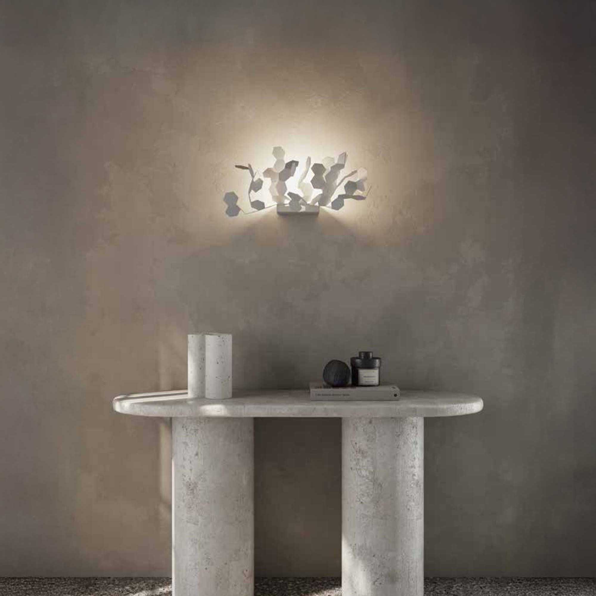 Jedním z největších lákadel nástěnného svítidla Andromeda je možnost jeho ruční modulace. Každý z šestiúhelníkových difuzorů lze samostatně ohýbat a natáčet, čímž si uživatel sám vytváří výsledný tvar a světelný efekt. Díky tomu je každá instalace originální a přizpůsobená konkrétnímu interiéru – svítidlo se tak stává interaktivním designovým prvkem, který nabízí mnohem víc než jen světlo.